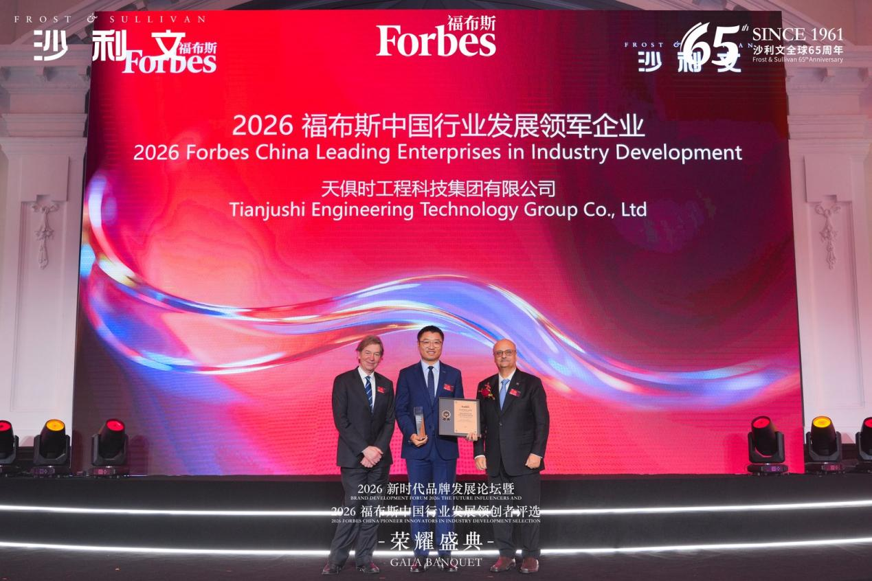 3月18日,由福布斯中国与弗若斯特沙利文联合发起的“2026福布斯中国行业发展领创者评选”结果盛大揭晓。天俱时集团凭借在工程科技领域卓越的创新表现、稳健的商业增长与深远的行业影响力,从众多参评企业中脱颖而出,荣膺“2026福布斯中国行业发展领军企业”。